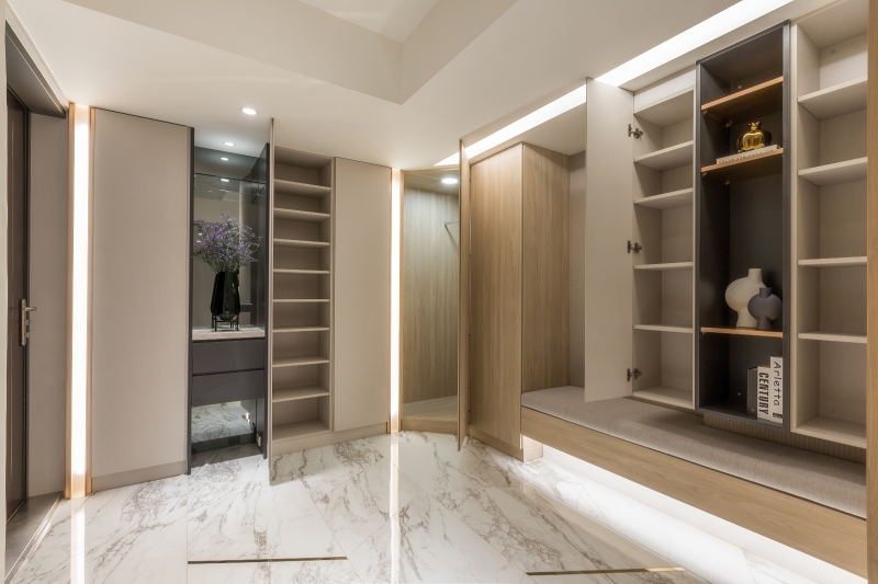 - 動線流暢:重塑狹窄玄關,選擇線條簡俐的櫃體配置,使出入行進間如流雲,毫無阻滯。