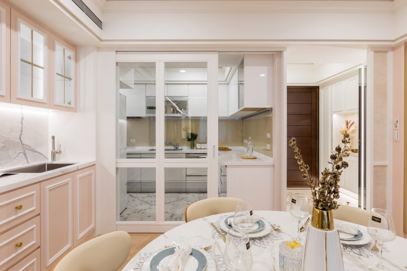 ・有效阻煙:廚房採用透明玻璃拉門,維持公領域視覺開闊性的同時,亦有效阻擋油煙散逸。