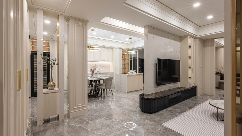 於時光流轉間,尋覓一處身心安處。本案承載著一對退休夫妻的期盼,由台北市室內設計專業團隊三宅一秀施展台北市豪宅室內設計之精粹,將老舊私宅進行全面翻新。設計師深諳新北市豪宅室內設計對於長輩居家安全之重視,特意採用無障礙空間規劃與零高低差地坪設計,為居者構築出便利且穩定的起居環境。透過重整格局,不僅消弭了原有的壓迫感,更展現新竹市豪宅室內設計對空間機能的細膩洞察。這不僅是一次老屋翻新的工程,更是一場溫潤人心的藝術實踐,於美式優雅的語彙中,為屋主夫妻量身打造如精品旅宿般的幸福餘生,讓暮年時光如詞章般悠遠而從容。