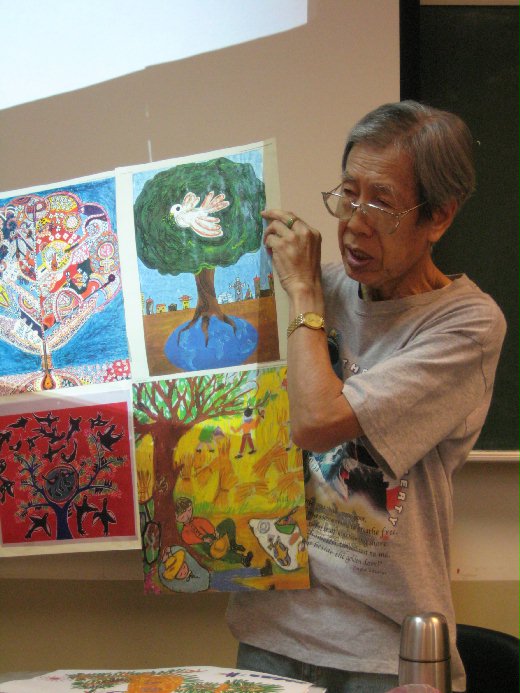 感激鄭明進老師年近70還為了教學背了三大袋的圖書