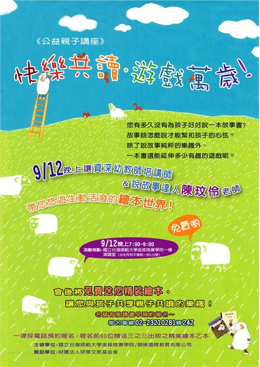 *******會後將免費送您精裝繪本!名額有限請儘早預約報名~