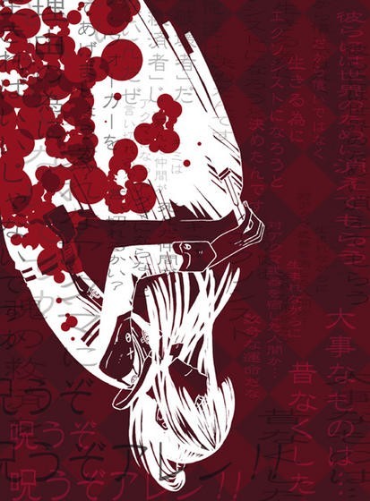 婦人嘴角殘留些許血跡,兩手肘都磨破皮了,看得見血從皮膚滲出,雖然因此感到無力,但她還是竭盡所能的拾起地上約兩個拳頭大的石頭,趁但丁專注的搜尋男嬰之時,狠狠得往他的頭砸去。