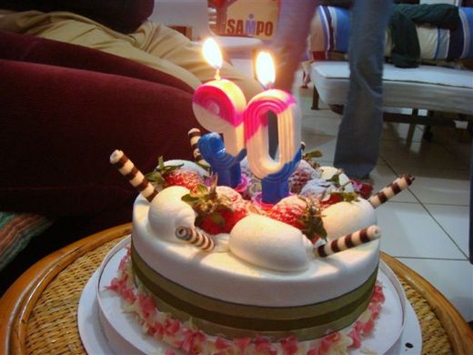 三點鐘,C、C1、S2、H等到,我們幾個人幫J伯伯過九十歲生日。C伯帶佛跳牆,S伯帶壽桃,H帶茶油麵線,我帶了一個六吋小蛋糕給大家一塊享用。