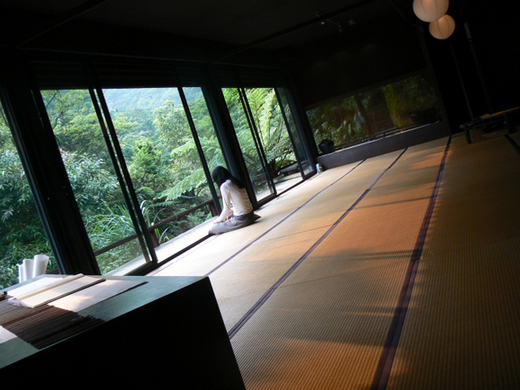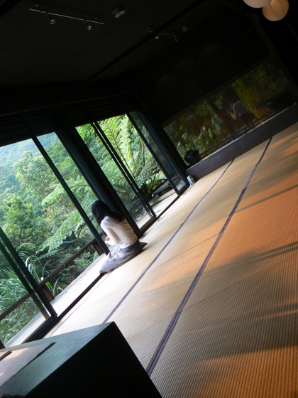 好景、美食與好心情,就在談笑之間結束了午宴。我們一行七個人到另外一處隱密的地方喝茶,有專門的泡茶師為我們沏茶。無意之間,一隻翠翼鳩撞上了落地窗,碰!好大一聲,牠應聲倒下,暈了過去。我們全飛奔過去看牠,正好林老闆走了進來準備陪我們聊聊。