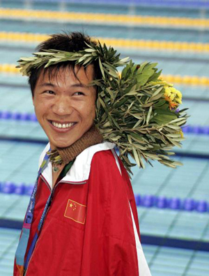 晚間新聞不經意間看到一個人胸前掛了面金牌,用脖子夾著花束.這一幕的場景就是目前正在進行的殘障奧運會頒獎台,而這為得獎者就是中國游泳好手"何軍權"!