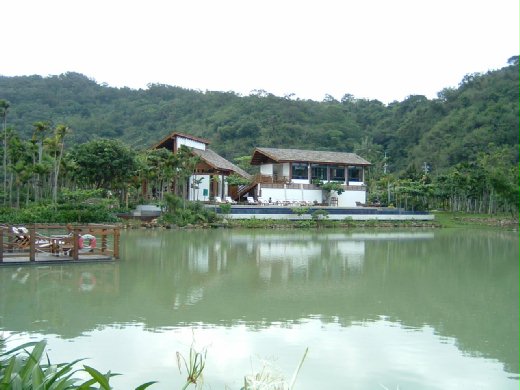 所以,與姊姊的牡丹灣之旅,在渡假村裡的這座湖,即便面積並不大,但因人跡不多而顯其幽靜。看那湖水並不因風皺面,便得一個美字,突然就想起宋朝蘇軾的「飲湖」一詩。
