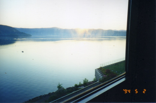 好些年前,曾經旅行到北海道洞爺湖,那夜暫宿的旅店,便是依著湖畔的建築,幸運的是,領隊安排給我姊妹的客房,正是面向湖區水域。