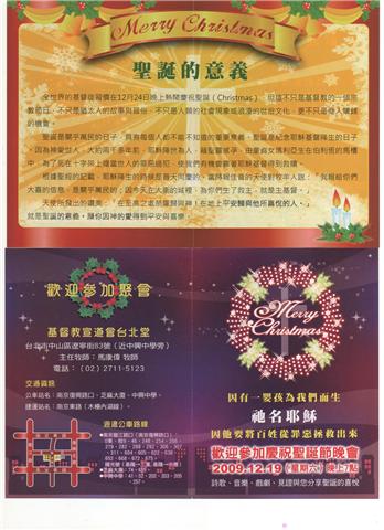 敬邀各位好友蒞臨2009.12.19聖誕音樂晚會