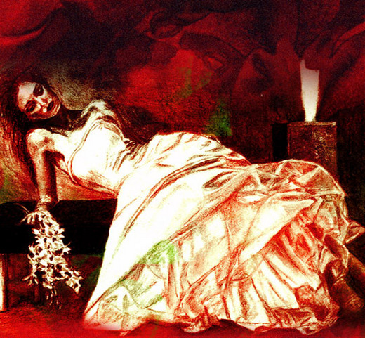 這幅畫中被暗紅裹住的美麗女子,她的又愛又懼的心情,被你的畫筆