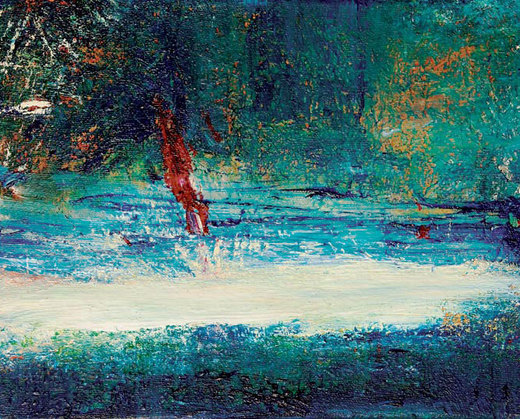 *畫作是我於2007年,完成的丙烯畫【穿越】,畫意和詩文貼近,特選在這裡襯景。