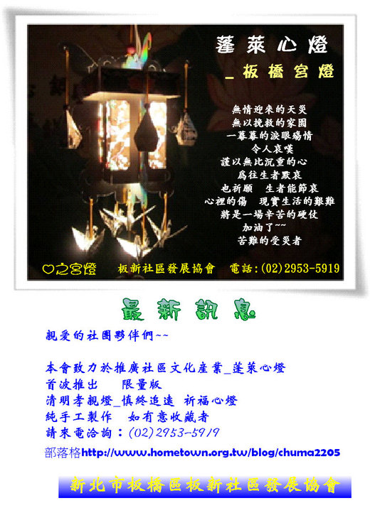 - 1樓. 板新燈彩2011/03/18 18:33蓬萊心燈 為日本加油