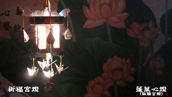 「宮燈」古人取其添丁光明平安之意,為一般民間婚嫁--舅仔燈的含意。在宮廟每年年初會為民眾點燈祈福,祈福象徵平安之意。