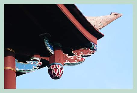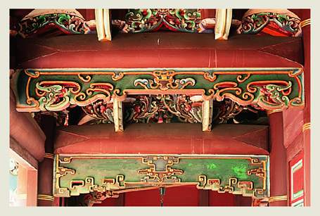 ↑來青閣二樓迴廊員光極富變化,有螭虎軟團與硬團。