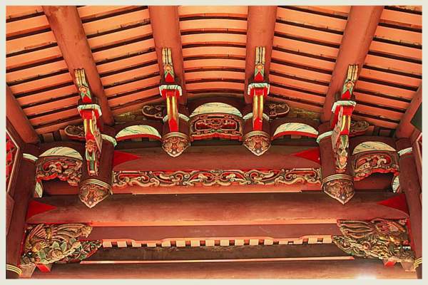 斗拱的起源主要是結構功能,拱從柱子伸出,末端接連斗,斗上又接住拱,層層往上疊升,頂住屋頂,承受與傳遞屋頂的重量。