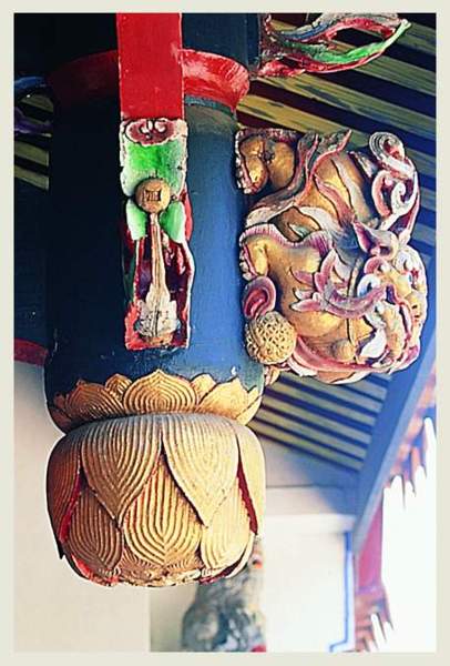 於吊柱外緣之木雕材,以遮飾垂花中段的卯口接縫,因部位明顯,是雕飾的精采重點。