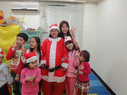 蘋果教室掛了許多聖誕節慶裝飾..整個非常有fu~