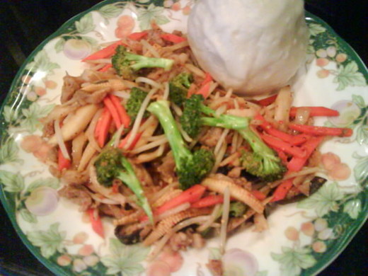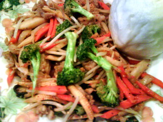 瘦肉絲/有機黑木耳/杏飽菇/紅蘿蔔/青花菜/韓國泡菜