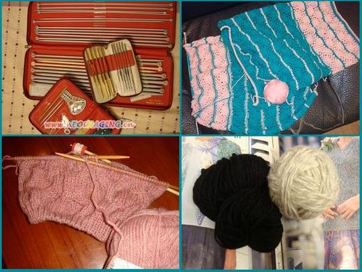 一件在公車上做(可能是圍巾或帽子,或是單純進行中的衣