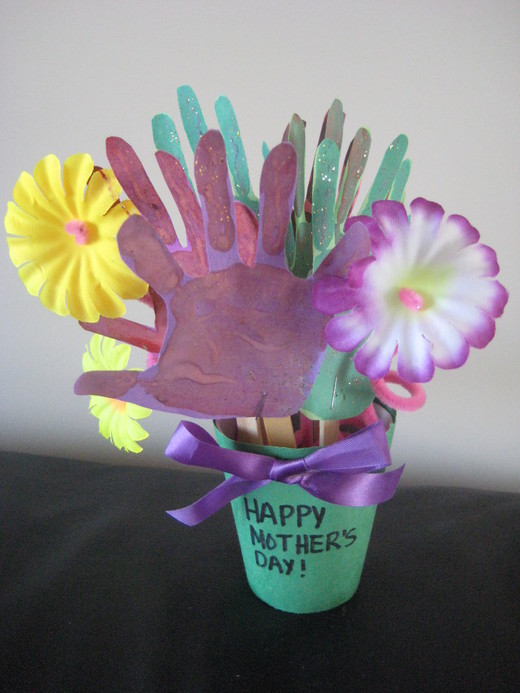 女兒說:那不是我做的,我只有做花和那些手印都是我印上的,其他都是老師幫忙做的。