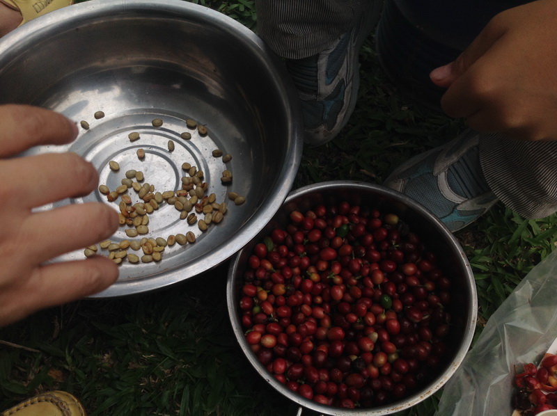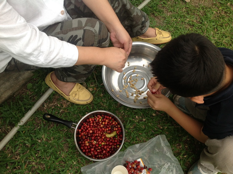 剝皮中的咖啡豆,真辛苦,要喝一杯真正有機咖啡不簡單!
