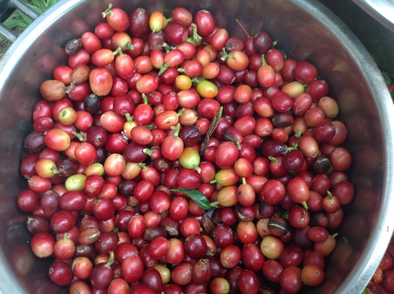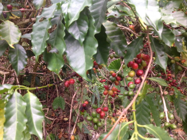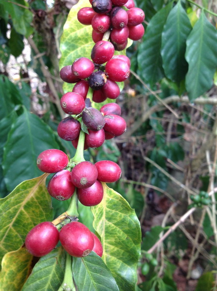 樹上紅了的咖啡豆,