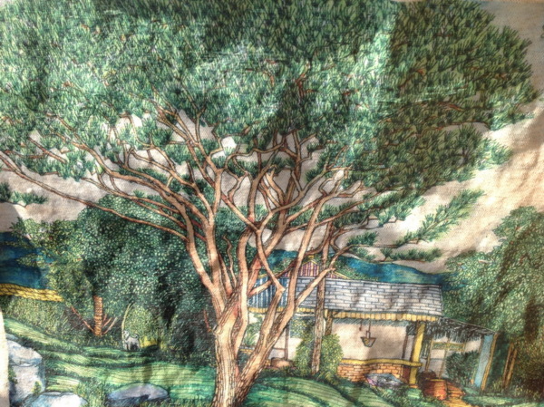 一個很普素的鄉間,一棵力與入口處的松樹,還又一口井。很有味道