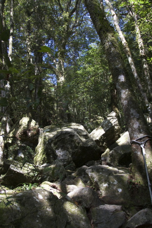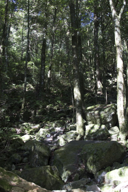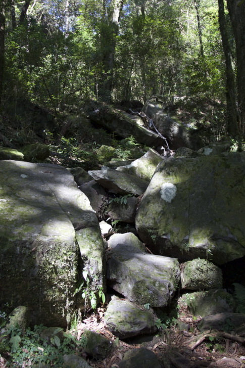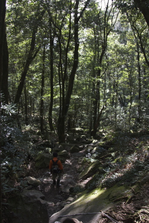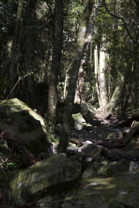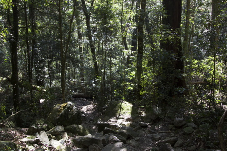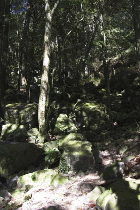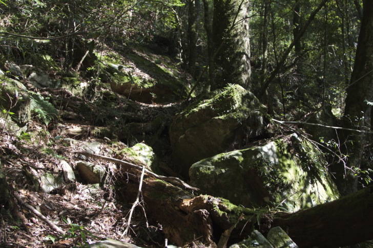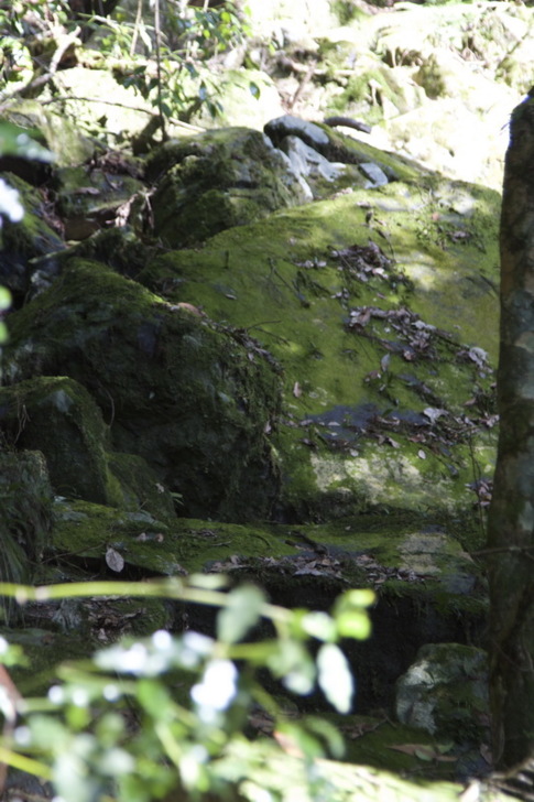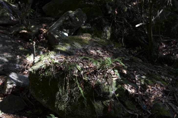 石頭堆疊的路上,長滿青苔,要是下雨後或潮濕的霧氣,將會使通路更易打滑。