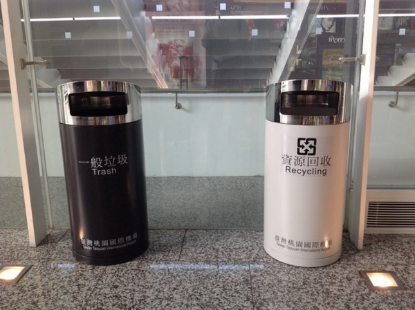 這是機場內,黑白分明的垃圾桶