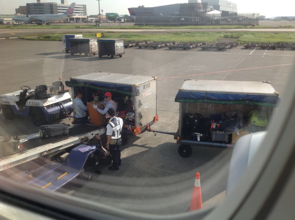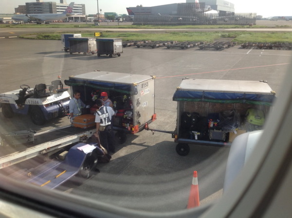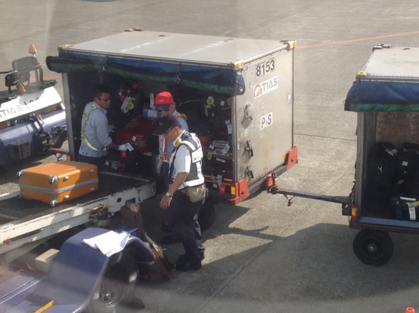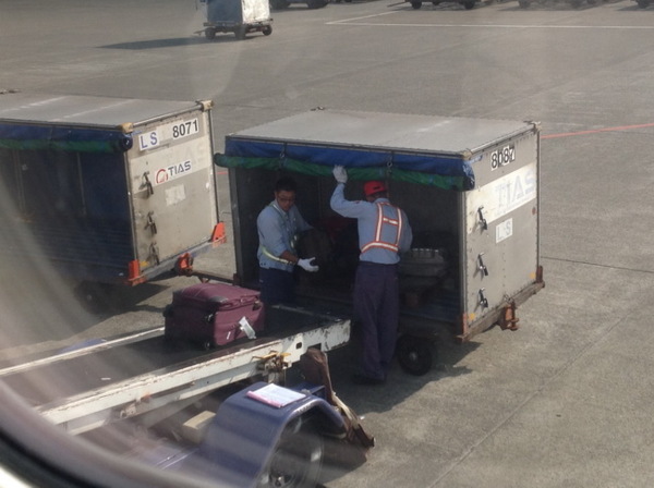 這是我們搭機人的行李,正輸送上機中