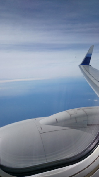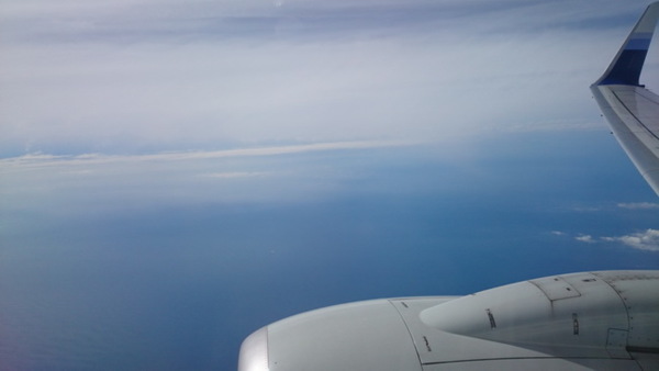 看飛機外的景色,可以看見天空和海洋