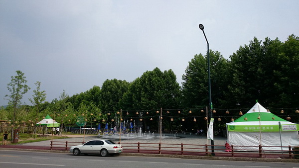 展場附近的官防堤林旁公園,有一個音樂噴水泉池