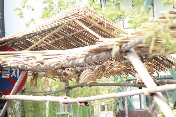 竹子節本當用竹子搭建,才顯得搭配,還掛著竹簾