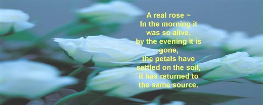 生命就如一朵玫瑰, 它是真實存在的, 但同時也是一個虛幻, 沒有保證, 沒有永遠. 早上它光彩奪目, 璨爛地盛開在你的面前. 到了晚上它就凋謝了, 一片片的花片落入泥裏, 就如它從土中而來. 生命是一個循環的圓, 有生就有死, 這是自然的定律, 無法抵抗的命運.