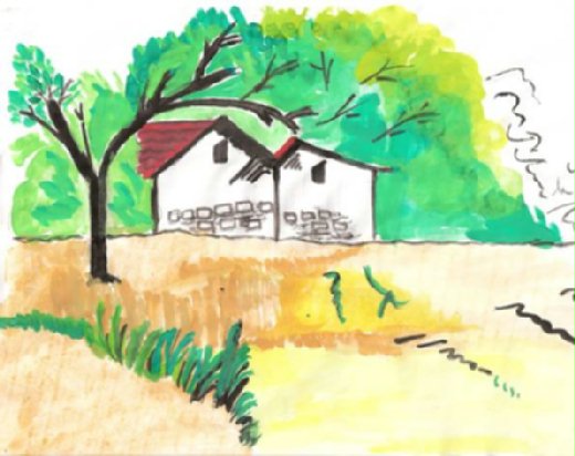 女兒一拿到書馬上練習畫畫, 真地進步神速. 上圖是她沒拿到這本畫簿前的作品, 下圖是拿到畫簿後的作品.