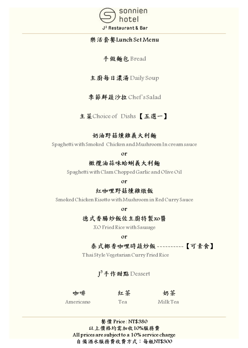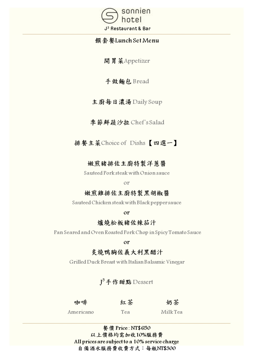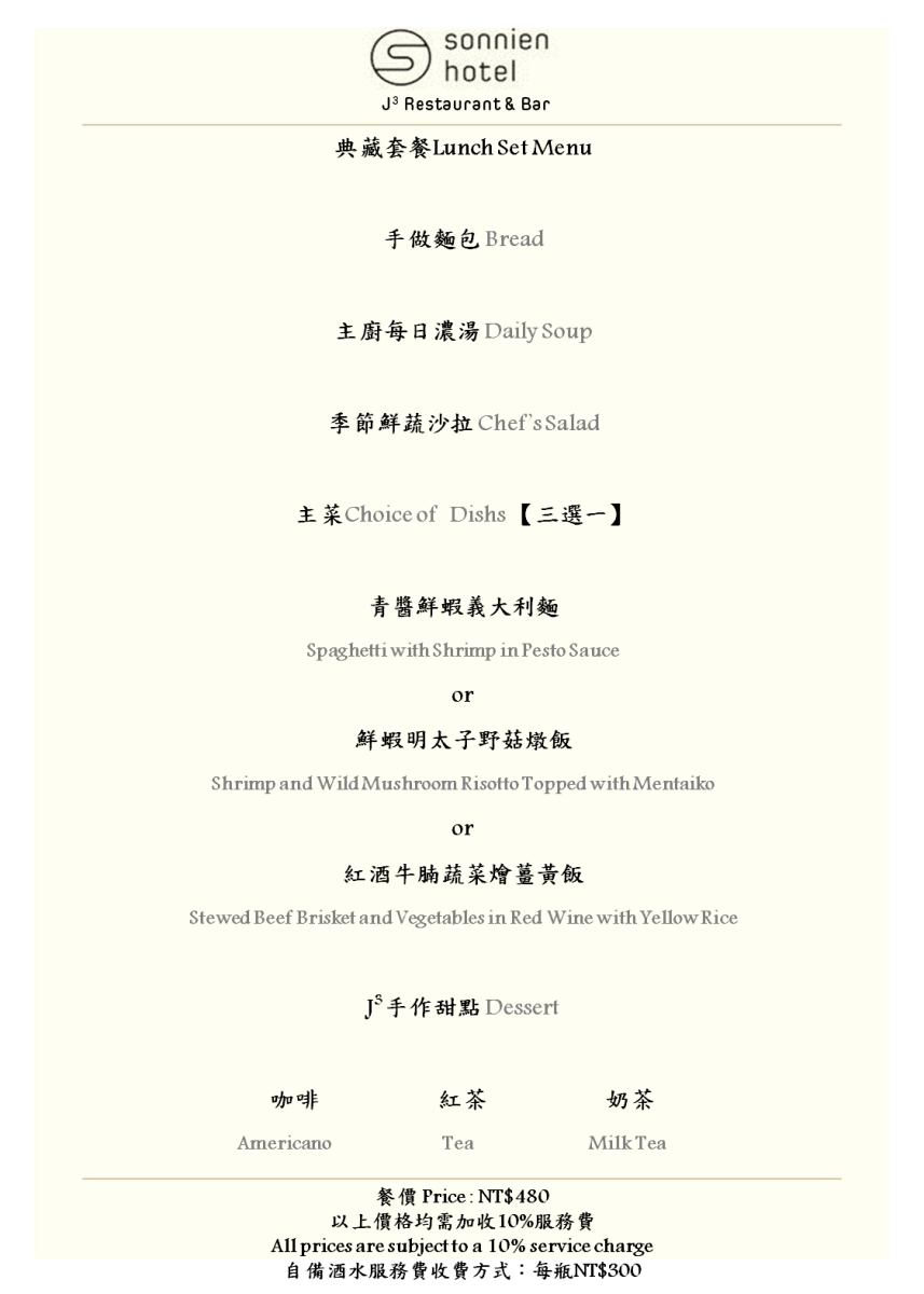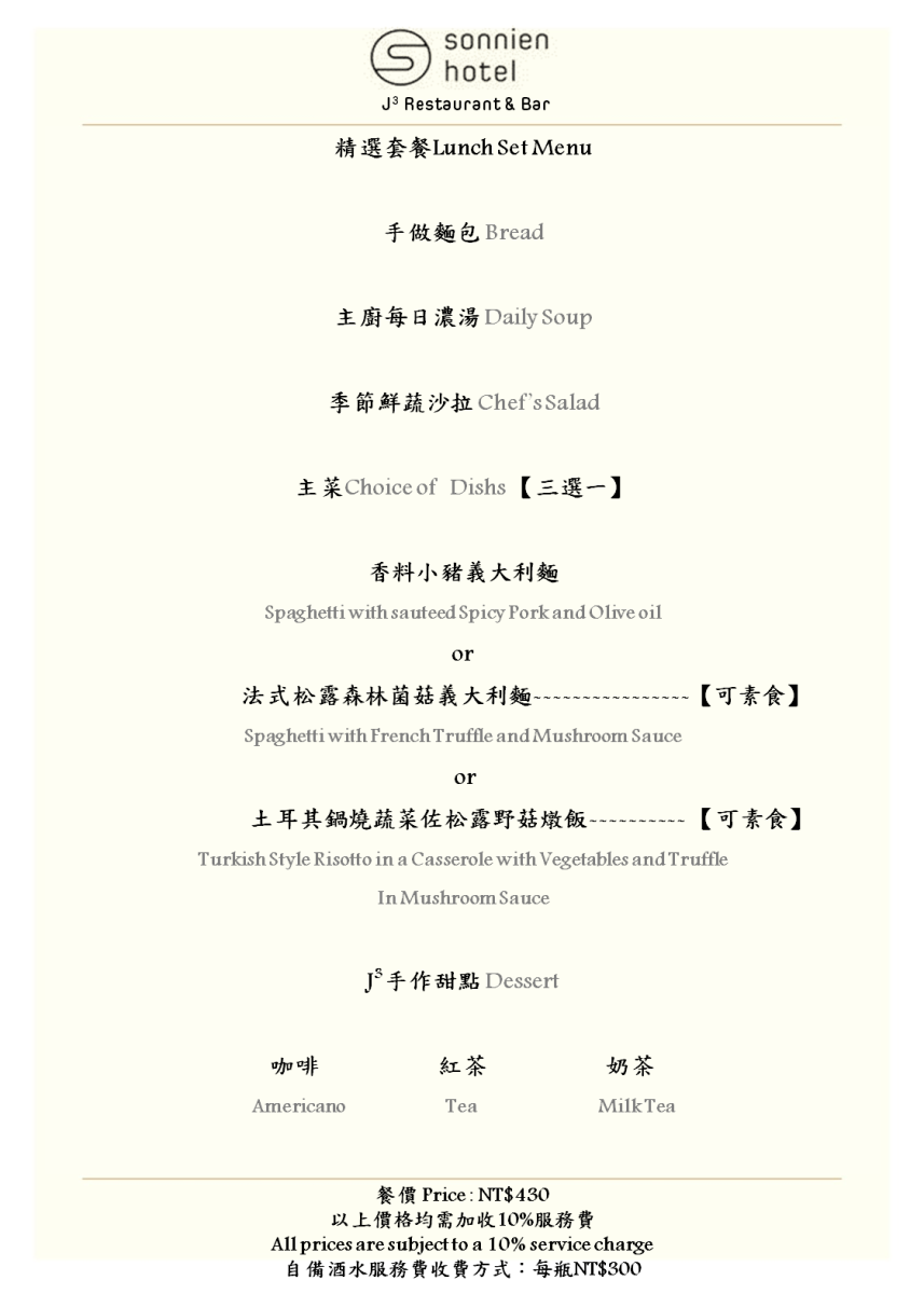 松哖酒店 Sonnien Hotel J3 Restaurant & Bar-消費金額折抵