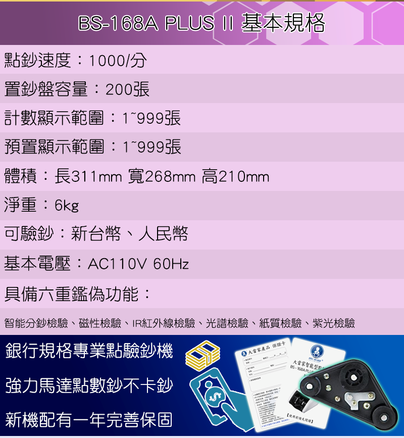【大當家】BS-168A PLUS II 台幣專用點驗鈔機面額總計(銀行專用)開箱心得及評價感想