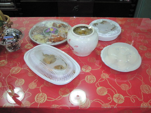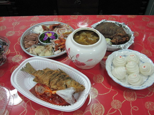雖然是一個人的年夜飯,我也不會虧待自己的!一星期前在小餐廳訂了四樣年菜(因為只有一個人也吃不了太多!)有糖醋鮮魚,脆皮蹄膀,烏魚子拼盤和鮑魚佛跳牆還有附贈的銀絲卷!