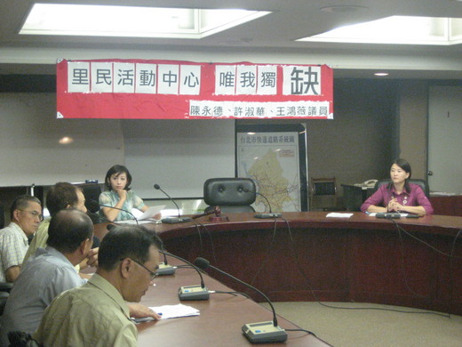 臺北市政府民政局政策上決定不再新建里民活動中心,但北市仍有地方並沒有里民活動中心,因資源分配不均而淪為次等市民。包括許淑華、王鴻薇等信義區市議員22日上午一致指出,信義區福德次分區屬信義區老舊社區,區內8個里沒有一個像樣的里民活動中心,他們一致要求,市府財政局在公告招商前,在廣慈社福特區BOT開發案規劃案規劃增設一處區民活動中心,供民眾辦理活動之用。