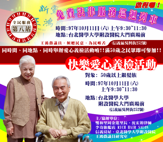 10月11日免費法律諮詢\愛心義剪\健康檢查活動