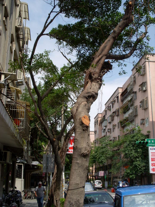 台北的路樹亂剪已非今日開始,我曾經當場糾正過剪樹工人,供人不聽,繼續把路樹檢的光凸凸的。請王議員看看敦南圓環邊台新銀行前的鳳凰木,好端端的沒這到誰擋到誰就被剪凸了,冬天就剪樹說是防颱風?真是笑話。