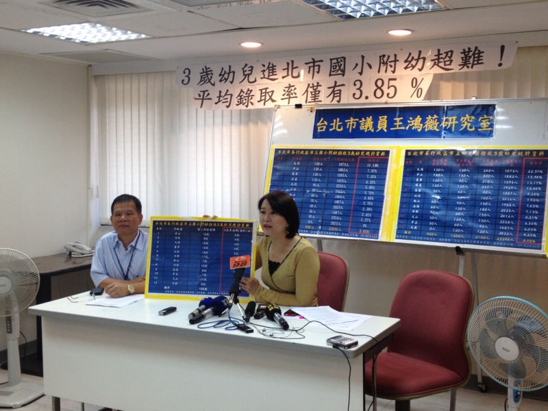 根據王鴻薇的調查發現,台北市135間國小附設幼兒園幾乎都不收3歲以下幼兒,全市國小附幼只有30間學校,共招收900名3歲幼兒。以今年台北市3歲幼兒人數達2萬3394人來計算,想要進市立國小附幼真的很難,錄取率只有3.85%。