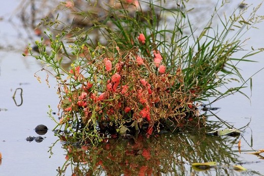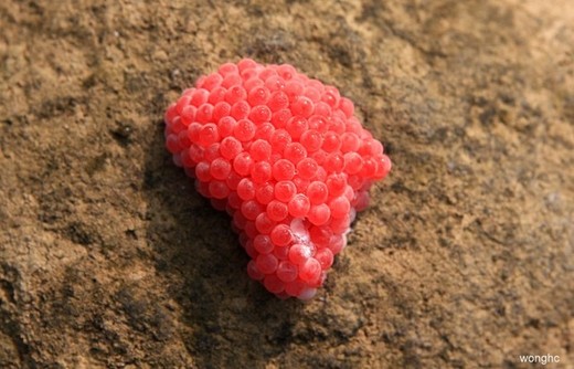 沒想到,科學家從這紅色的卵塊中萃取出蝦紅素(蝦青素Astaxanthin),據云具有強抗氧化能力,可以用在健康食品或美容產品中,到時候口袋滿滿,因而招來農民養殖福壽螺,夢想著幾分水田會生出金蛋。