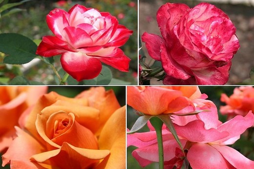 Double Delight(雙喜)和Cherry Parfait(櫻桃派)是園中很容易搞混的品種,特別是盛開過後。雙喜花朵似較大些,年輕的時候,中心的花瓣帶著黃色,愈靠外比較老的花瓣邊緣染著鮮紅色,而這紅色的色素隨著時日擴散,終於使得全部的花瓣都染著紅邊。如同頑童在濕掉的宣紙上塗鴉,胡亂地將全部的花瓣都畫上紅色顏料。