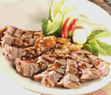 日式醬燒和牛 材料: 厚切日本和牛扒…300克 蒜頭…5粒(切片) 洋蔥…1/4個(切絲) 白芝麻…5克 青瓜…適量(伴碟用) 牛扒醃料: 鹽…少許 胡椒粉…少許 調味醬汁: 日本檸檬醋…1.5茶匙 日本燒肉汁…2.3湯匙 日本純麻油…2茶匙 做法: [1]用一大碗著牛扒,加入醃料醃約15分鐘備用。 [2]大火燒熱一隻坑紋鑊(不用落油),用夾子把牛扒夾著:先把牛扒的邊煎約1/2分鐘,再平放牛扒–把兩邊煎至大約8成熟(每邊煎約一分鐘),取出後放置在碟中攤涼一會,再切厚片備用。 [3]用中火燒熱平底鑊,下2茶匙油,爆香蒜片,再加入洋蔥絲炒至軟身。 [4]按次序加入:燒肉汁、檸檬醋、麻油、白芝麻,把醬汁煮一會至濃稠。 [5]把醬汁平均地淋在和牛扒上,加上青瓜伴碟即可。 |