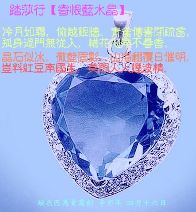 晶石似冰,徹藍眉影。山海翻覆日催明,豈料紅豆南國生,莫問人人煙波情。