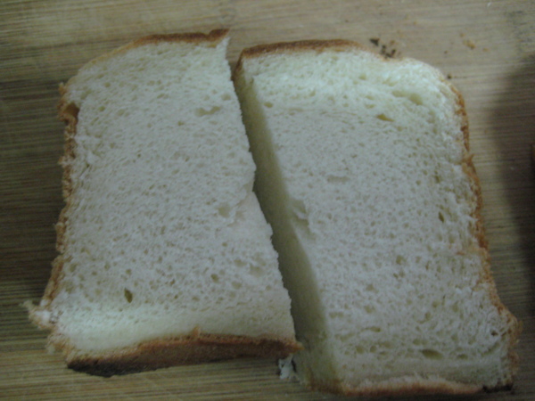 1.將整條牛奶土司用麵包刀切3公分厚度