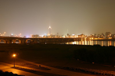 在車站前的河邊
