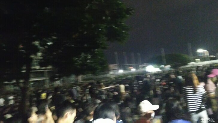 (撤退時我們從逢甲大學操場旁邊的小門進操場,發現其實操場並沒坐滿,而路過操場小門旁的機車停車場發現那裡觀看煙火也蠻讚的,大家都坐著,而且還蠻多空位,不過我們並沒有停在此太久,沒特別想看滿36分鐘,反倒是看人潮撤退比較有趣,所以,我在逢甲大學樹下吃芭樂,欣賞群眾散去)