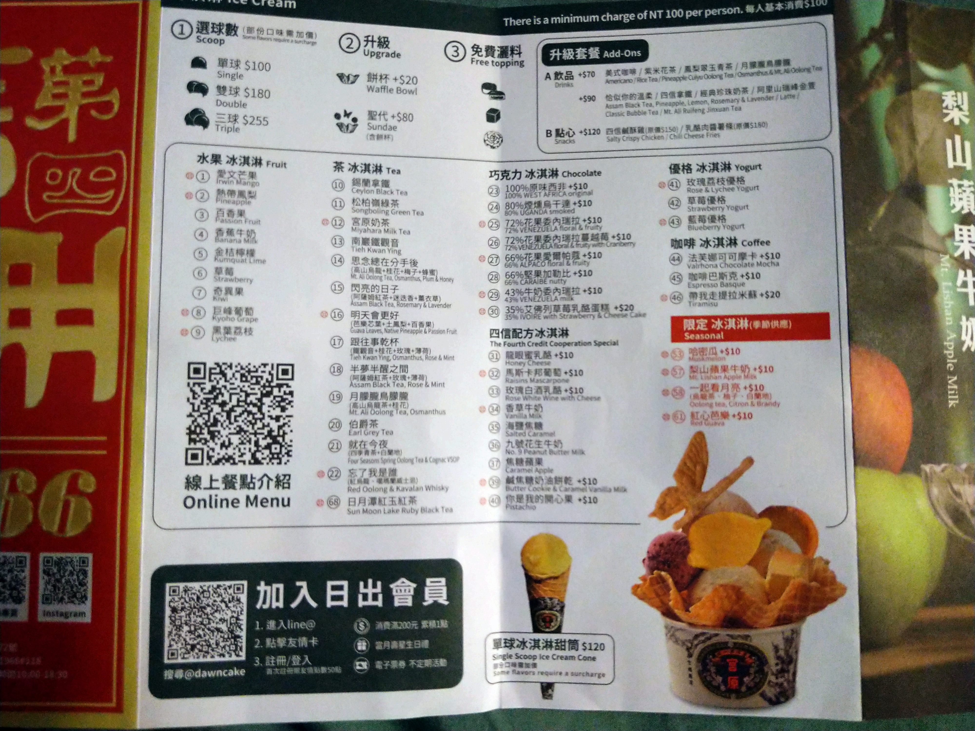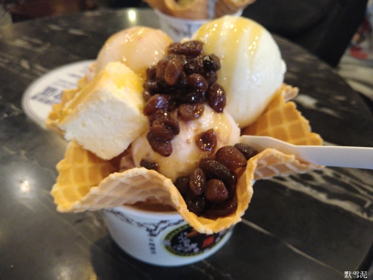 聽過「宮原眼科」吧?!「第四信用合作社」跟「宮原眼科」一樣的老闆,「第四信用合作社」有寬敞的內用區,除了冰淇淋還有豐仁冰和鬆餅。吃甜食真的會讓人心情愉快,這一站我特別開心。它的價位很有趣,一球100元,兩球180元,三球則是255,再傻也要買三球。偏偏我就是大傻,剛開始不知道價格,又因為趕著先去佔位置,便交代朋友幫我買兩球,朋友還幫我挑沒有餅杯的......看起來蠻寒酸的,不像別人端著的那麼漂亮豐盛,不過,還是吃得心滿意足。