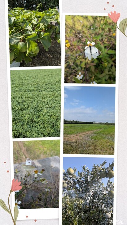 懂農事的朋友沿路介紹各種作物的名稱,她還說橘子上白白的麵粉是為了「防曬」,地上綠色一片的是花生....。這一路上我們看到了香蕉、玉米、火龍果、油菜花、橘子、花生、木瓜、芒果、百香果...發現雲林這一帶真是物產豐饒。